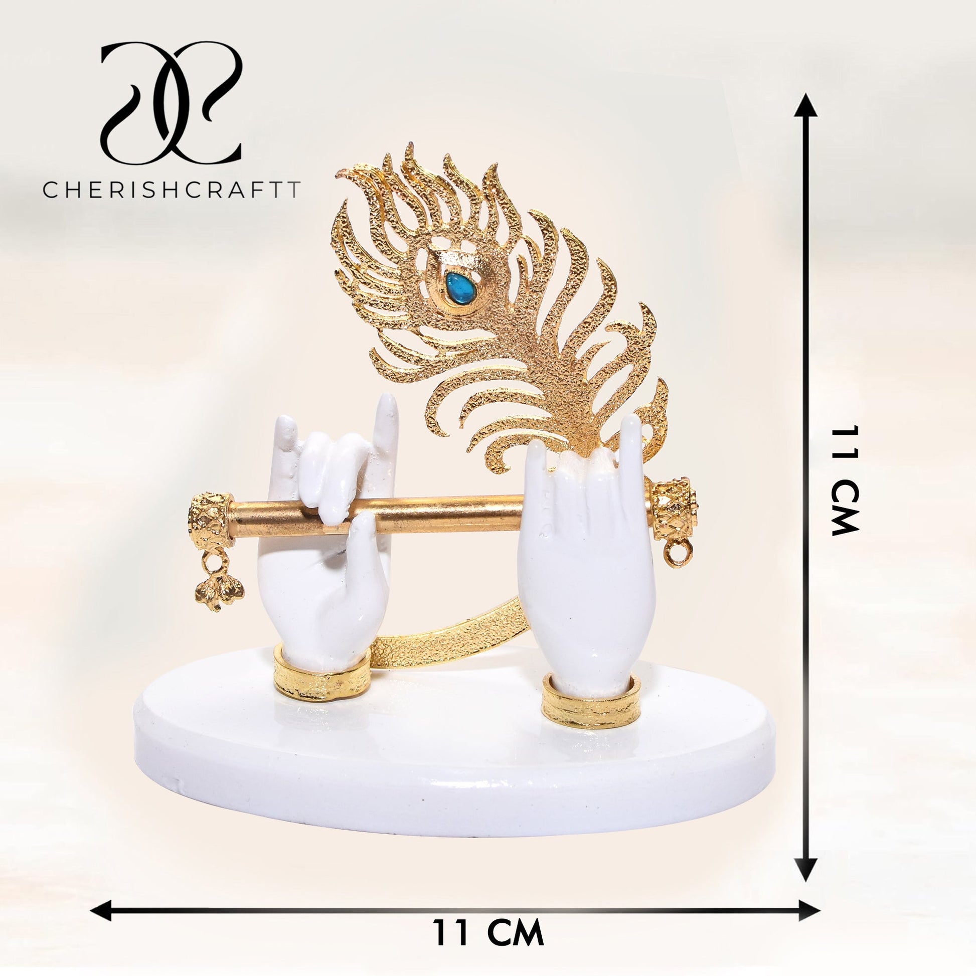 CHERISHCRAFTT Gold Plated Krishna Ji Hand with Flute Figurine | 24K Gold Plated Lord Krishna Hand with White Resin Base | Classical Decorative Piece for Home Décor, Wedding & Corporate Gifting